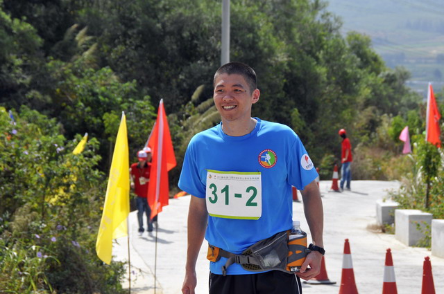 我們在出發(fā)處一直做著熱身,賽前不小心感冒的閩南向我們極力強調(diào)熱身的重要性,當我們詢問他的身體狀況,叫他比賽途中不要太勉強時,他擦去額頭上的汗水,爽朗一笑:“我感覺都快好了!”