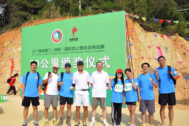 30公里縱走賽是組委會特別為業(yè)余組的選手開設的,分為團隊賽和個人賽,終點設在翔安的準提寺。我與同事施閩南、丁奕峰和賀曉娟組成了“閩南一隊”。