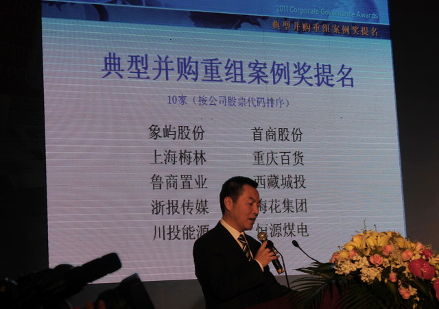 2011年12月19日,由上海證券交易所主辦、國務(wù)院國資委和經(jīng)濟(jì)合作與發(fā)展組織(OECD)共同支持的第十屆中國公司治理論壇在上海召開。中國證監(jiān)會主席郭樹清、上海市委副書記、市長韓正、上海市委常委、副市長屠光紹等領(lǐng)導(dǎo)出席論壇并給獲得公司治理專項(xiàng)獎的各獲獎上市公司頒獎。象嶼集團(tuán)副總裁、象嶼股份副董事長陳方代表公司應(yīng)邀出席論壇。今年,象嶼股份因其在歷時2年多的破產(chǎn)重整和資產(chǎn)重組中的優(yōu)良表現(xiàn)和創(chuàng)新而獲得“典型并購重組案例獎”提名。此獎項(xiàng)代表著業(yè)界和上交所對于象嶼股份成功借殼上市的肯定和贊賞。