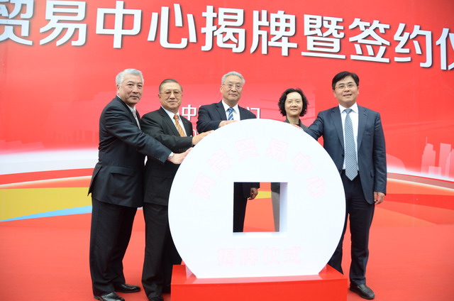海峽兩岸關(guān)系協(xié)會(huì)張銘清副會(huì)長、商務(wù)部臺(tái)港澳司陳星司長、廈門市人民政府張燦民副市長、臺(tái)灣兩岸共同市場(chǎng)基金會(huì)詹火生理事長、臺(tái)灣工商協(xié)進(jìn)會(huì)駱錦明理事長為兩岸貿(mào)易中心總部揭牌