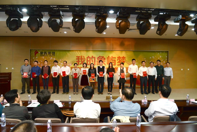集團(tuán)公司王龍雛董事長(zhǎng)、邵蕰默副書記、陳偉彬原副書記、象嶼保稅區(qū)管委會(huì)薛志宏處長(zhǎng)、集團(tuán)公司劉信平副總裁、林志勇總裁助理等為征文、攝影、演講比賽獲獎(jiǎng)人員頒獎(jiǎng)。