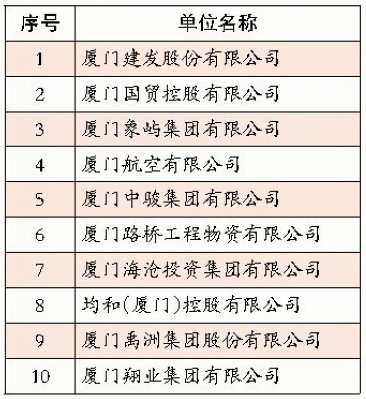 2014廈門服務(wù)業(yè)企業(yè)十強(qiáng)排行榜