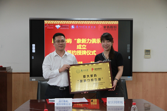 4月12日,廈門大學管理學院授牌象嶼股份成立“學生就業(yè)實習基地”,象嶼股份依托廈大管理學院設立廈大象嶼“象新力俱樂部”簽約/授牌儀式隆重舉行。廈大管理學院院長葉建明、黨委副書記洪秋霞、象嶼股份黨委書記、總經(jīng)理鄧啟東、象嶼股份人力資源總監(jiān)詹傳長等雙方領導出席見證了本次合作儀式。
