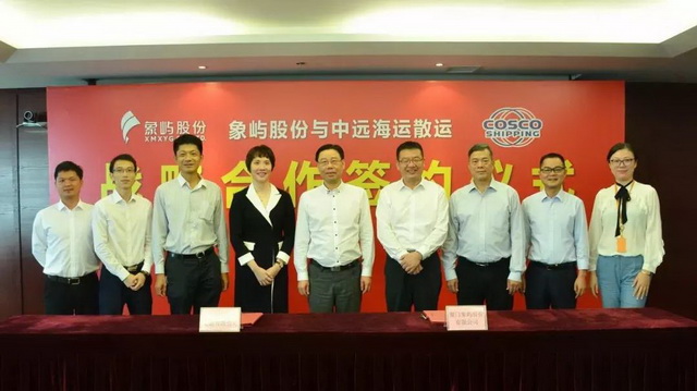 8月3日,廈門象嶼股份有限公司與中遠海運散貨運輸有限公司舉行戰(zhàn)略合作協(xié)議簽署儀式。象嶼股份黨委書記、總經理鄧啟東、中遠海運散運黨委副書記、總經理楊志堅分別代表雙方公司在戰(zhàn)略合作協(xié)議上簽字,象嶼股份副總經理、象嶼速傳總經理肖靜勤、中遠海運散運營銷中心總監(jiān)謝光盛等領導出席了簽約儀式。