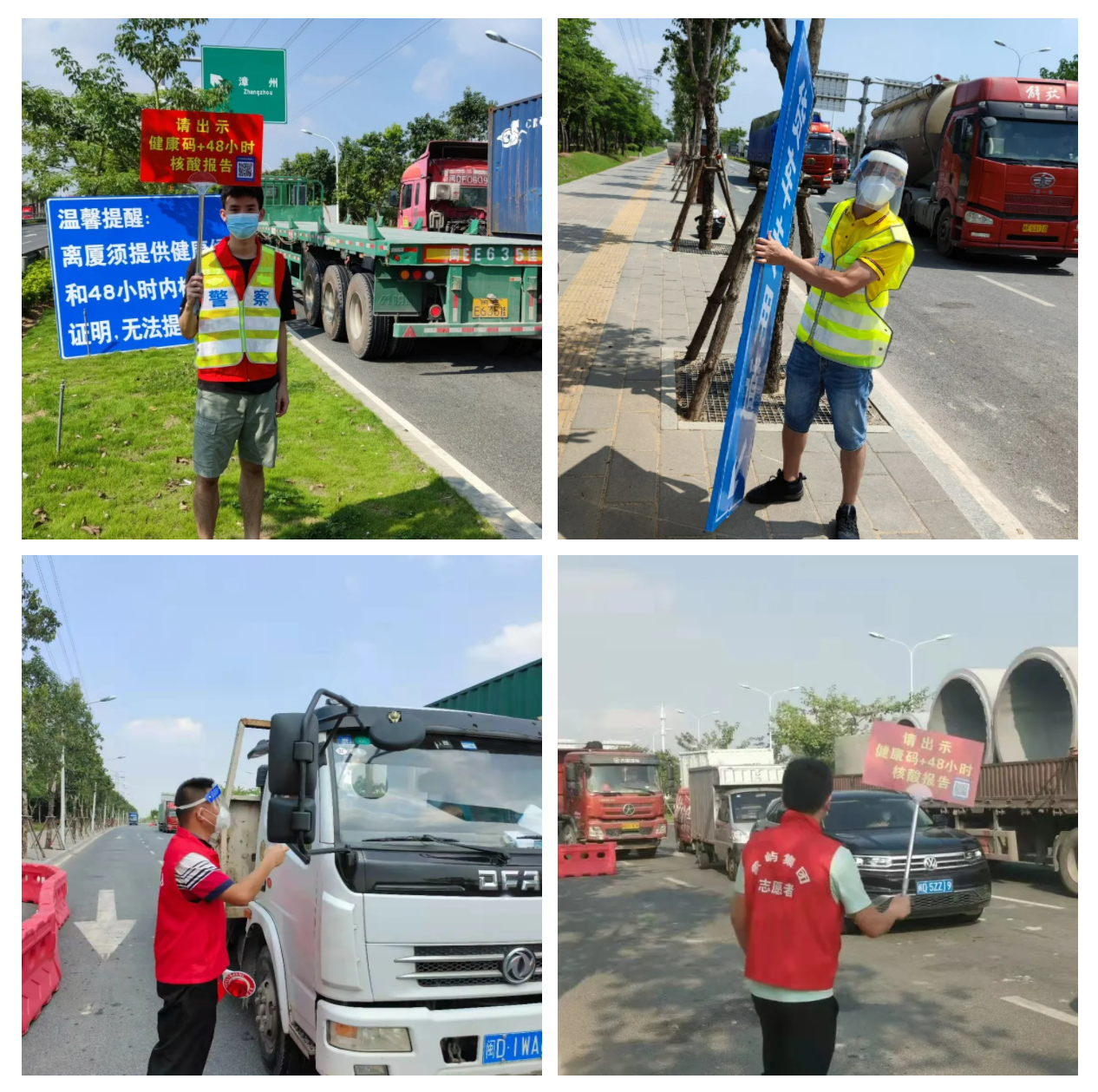 在海滄海翔大道東埔村,遠遠就能看到象嶼股份志愿者手持指引牌,“請出示健康碼+48小時核酸報告”,他們正在開展交通防控協管工作。他們在路口一站就是8小時,凌晨24點到早上8點的夜班更是對志愿者們體力與毅力的考驗。