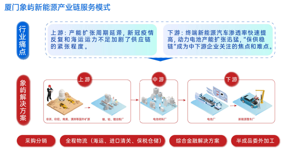 象嶼股份始終堅持全產(chǎn)業(yè)鏈經(jīng)營服務(wù),踐行資源端國內(nèi)外雙引擎發(fā)力,國際圍繞澳洲、非洲和南美資源富集地,國內(nèi)重點(diǎn)布局青海、四川,打通礦產(chǎn)品到半成品再到下游產(chǎn)成品的加工通路,有效串聯(lián)海內(nèi)外全鏈路客戶,打造了全程供應(yīng)鏈綜合服務(wù)方案。
